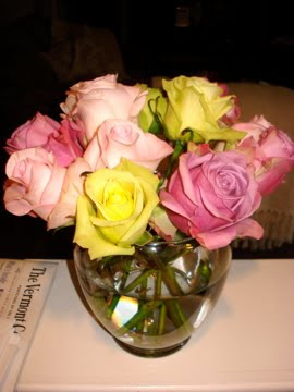 Green, purple, and pink roses I brought to my mom. They were so big and smelled great.